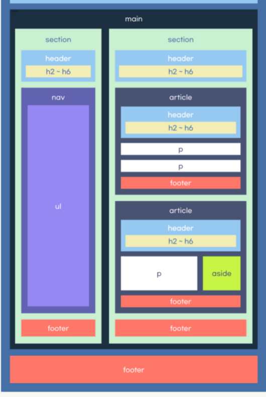 - article과 section 요소는 heading 요소와 함께 사용하는 것을 권장(높이 없이 비워두기도 함)