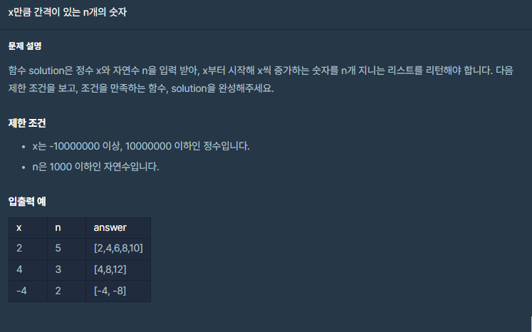 문제 1 x만큼 간격이 있는 n개의 숫자
