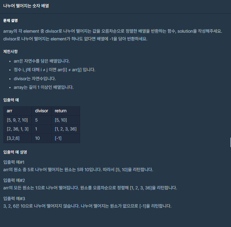 2. 배열의 값을 divisor로 나눈 나머지가 0이라면 answer배열에 push한다.