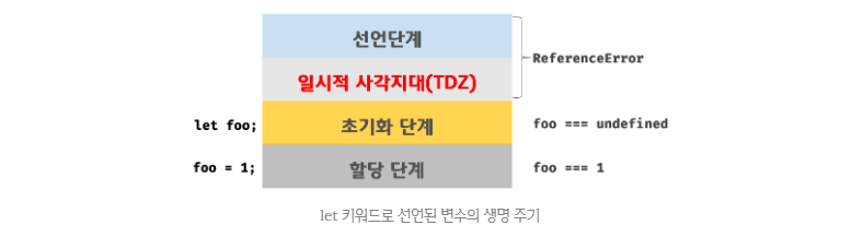 let은 선언단계랑 초기화단계가 분리되어서 진행됨